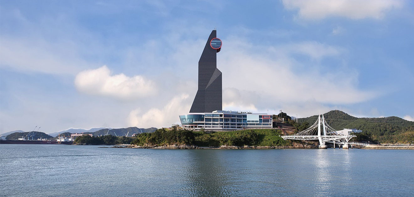 진해해양공원은 창원시 진해구의 음지도에 조성됐다. 육지와 250m 정도 떨어져 바다에 떠 있던 음지도는 해양공원이 조성되면서 음지교를 통해 육지와 연결됐다. 음지도와 우도는 다시 우도 보도교로 이어진다. 우도 보도교는 음지도 해안산책로와 연결돼 동선이 자연스레 이어진다. 음지도 해양공원 내에 건축연면적 7,576㎡ 건축물로, 전시동과 태양광 타워로 구성되어 있으며, 단일 건물로는 국내 최대 규모(600kW), 최대 높이(136m)의 태양광 발전시설을 갖추고 있다. 창원의 랜드마크 중 하나인 창원솔라타워는 돛을 형상화한 구조물로, 2,000여개의 태양광 모듈이 부착되어 있고, 높이 120m 지점에는 태양을 상징하는 원형전망대가 있어 인근 부산항 신항과 거가대교, 진해만 앞바다를 한눈에 조망할 수 있으며, 전망대 바닥 일부에 강화유리를 설치해 아래를 훤히 내려 볼 수 있도록 해놓는 점도 인상적이다.