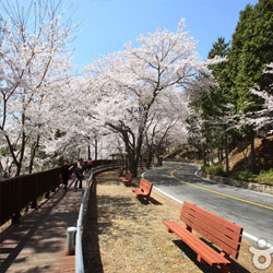 도로 곳곳에 있는 벤 치와 정자에 앉아서 나뭇가지 사이로 불어오는 맑은 공기와 더불어 자연을 벗삼고 있노라면 세속시름을 잊게 한다.