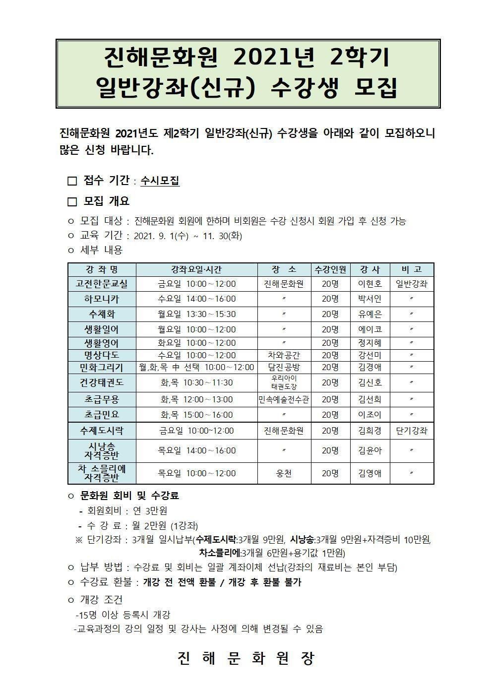*수강신청서는 진해문화원 블로그에서 다운 받아 작성 후 메일 발송 부탁 드립니다.