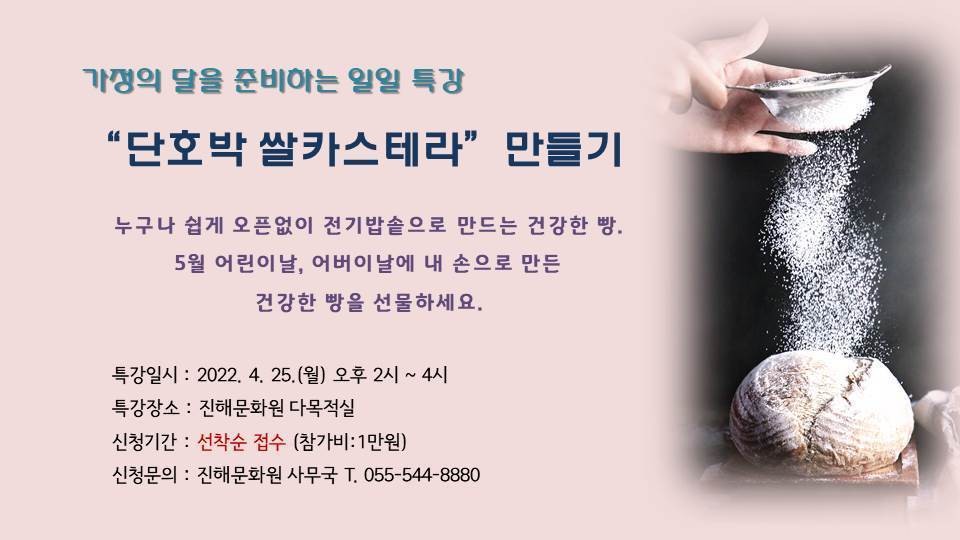 5월 일일특강 [단호박 쌀카스테라 만들기] 모집 안내