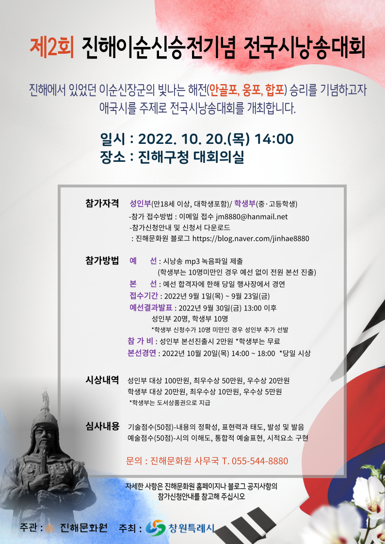 2022년 제2회 진해이순신승전기념 전국시낭송대회 개최 안내