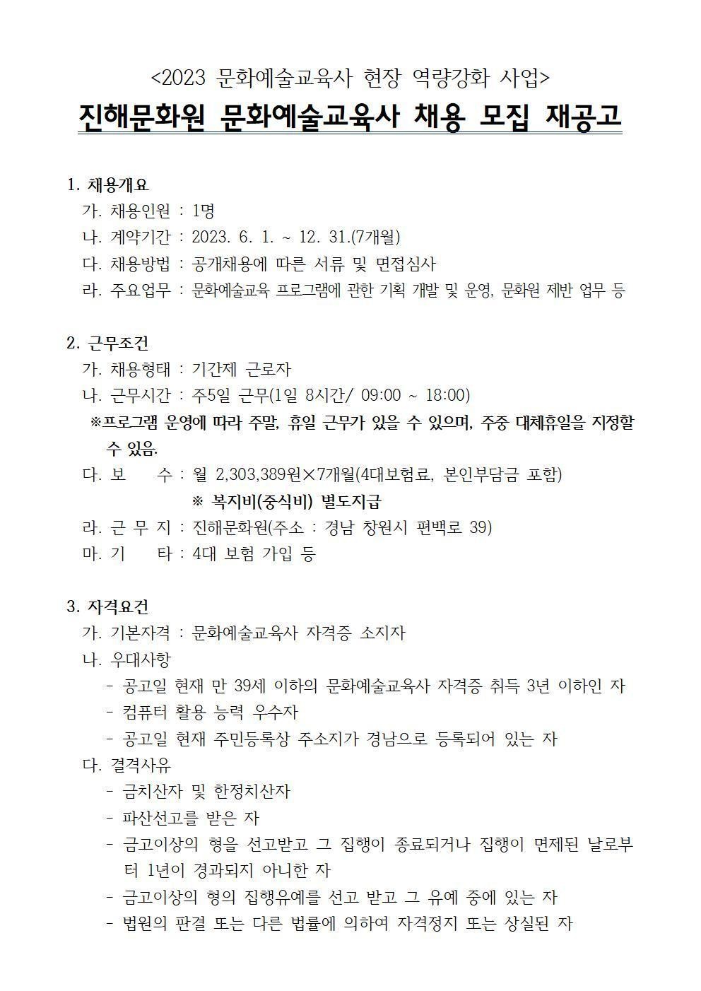<2023 문화예술교육사 현장 역량강화 사업> 문화예술교육사 모집 재공고