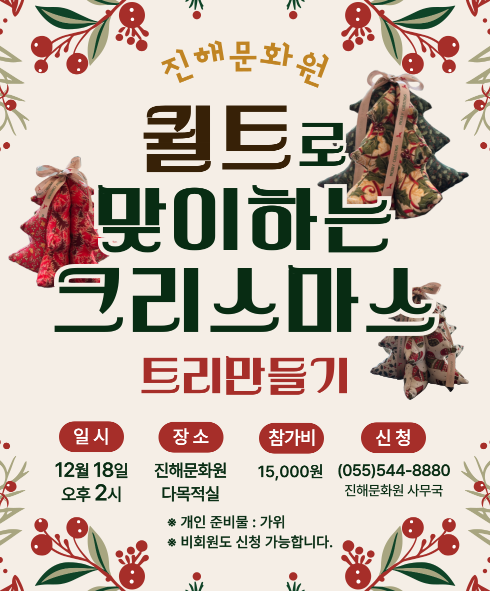 12월 일일특강 <퀼트로 맞이하는 크리스마스 트리만들기> 참가자 모집 안내