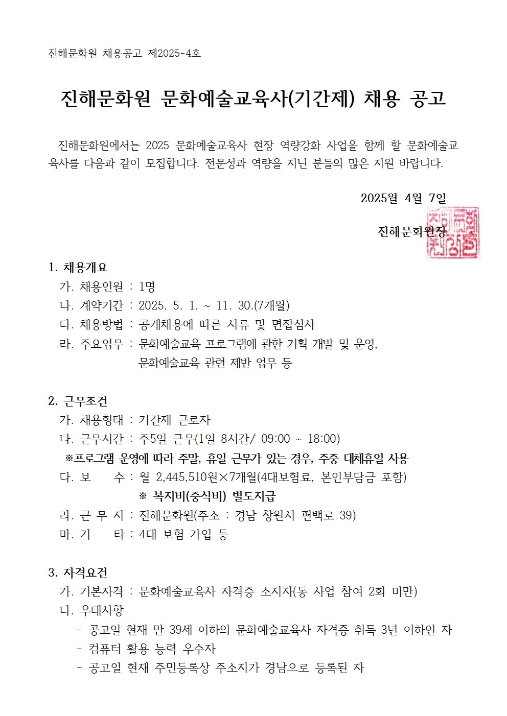 <2025 문화예술교육사 현장 역량강화 사업> 문화예술교육사 모집 공고