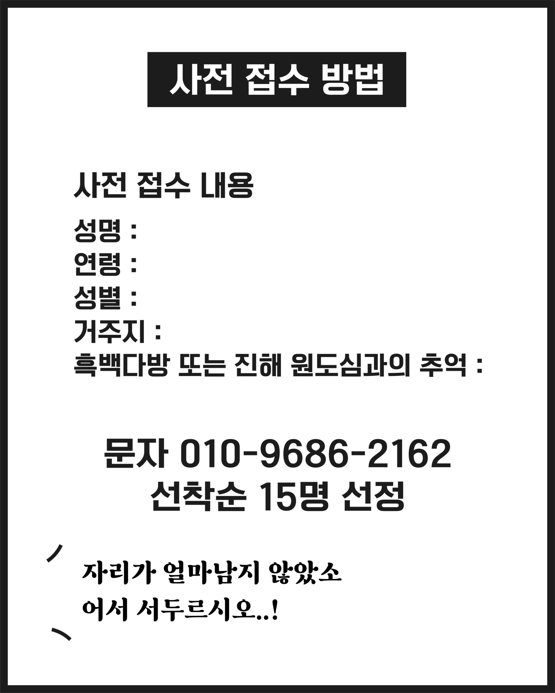 - 접수 : 사전 전화 접수 (선착순 25명, 055-544-8880)