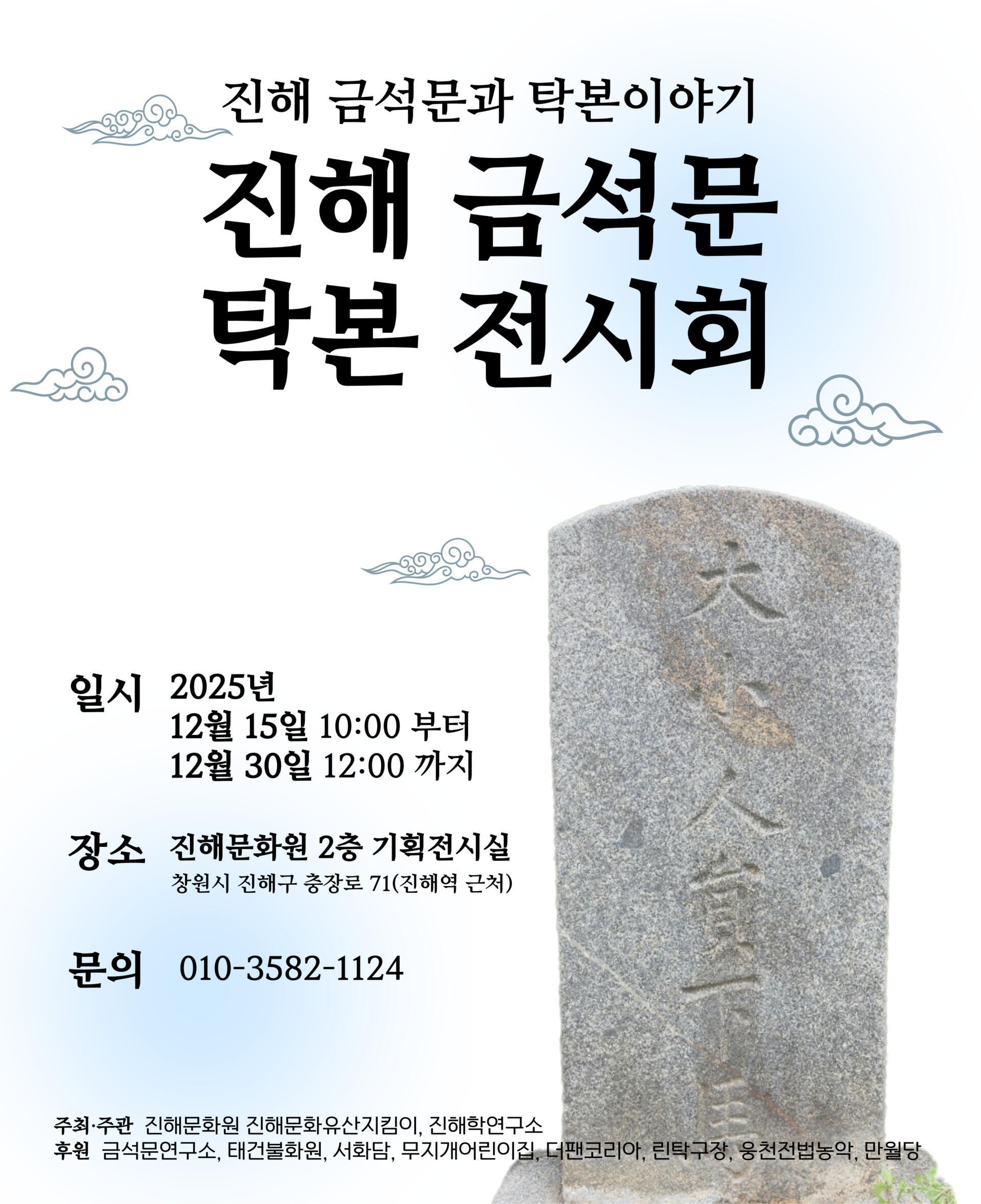 이번 전시는 이러한 금석문을 지키고자 꾸준히 현장을 찾아가 조사하고 기록해온 진해문화원 ‘진해문화유산지킴이 봉사단’의 결과물 전시회로,