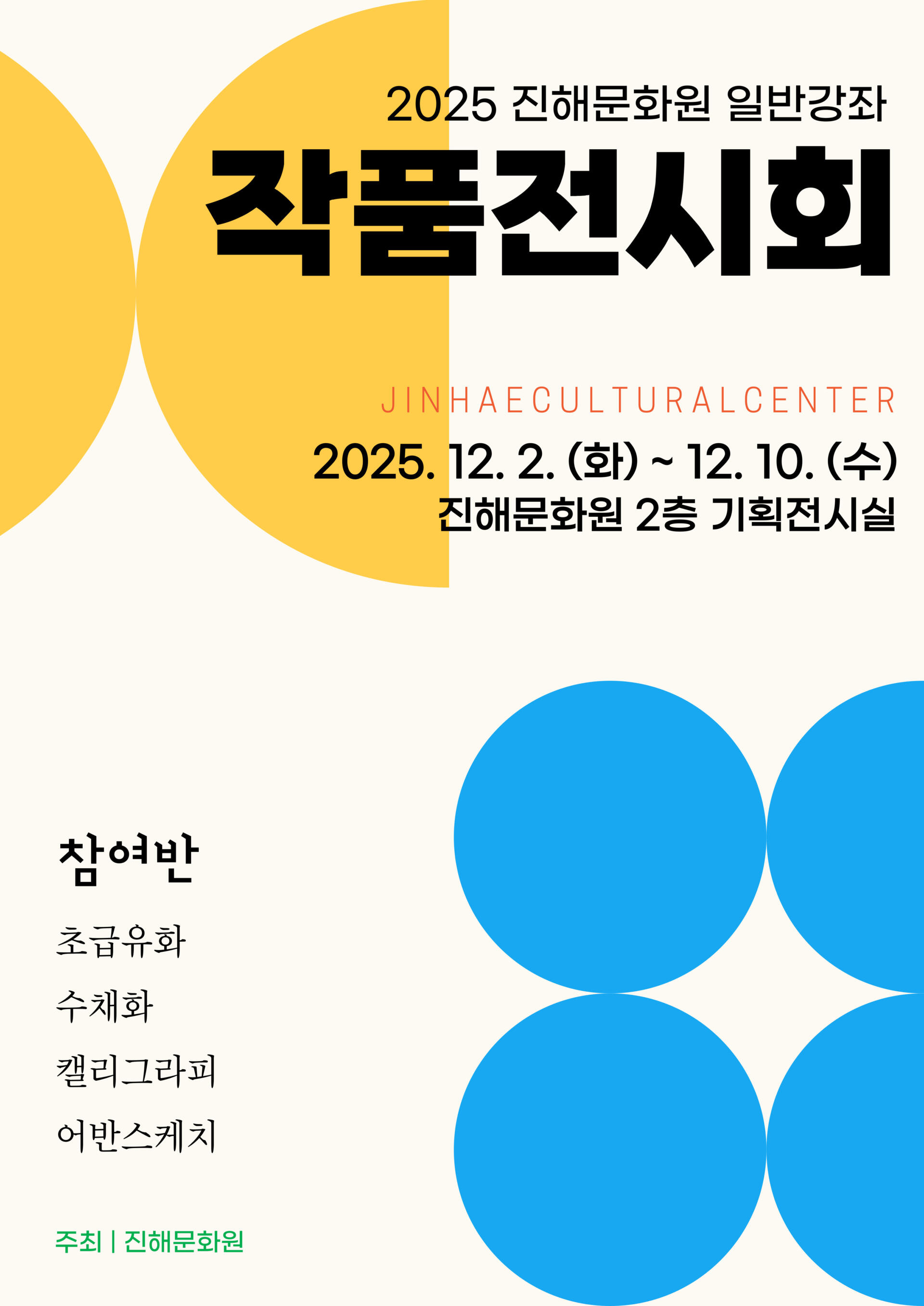 - 참여반 : 초급유화, 수채화, 어반스케치, 캘리그라피